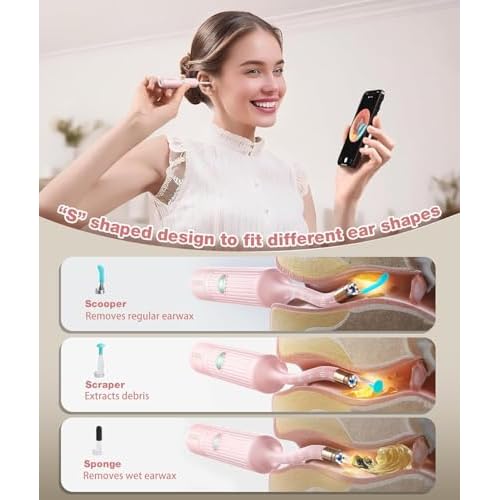 Ear Wax Removal Tool Camera, HD Visual Ear Cleaner with Flexible Otoscope & S-Shaped Silicone Head,WiFi Earwax Remover Kit with Tweezers, 21-in-1 Set for Family, Adults/Kids, Home & Travel