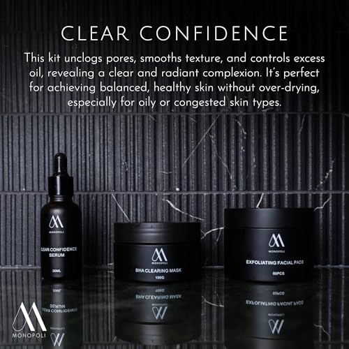 Monopoli Skin Clear Confidence Kit | Acne Serum, Exfoliating Face Pads & BHA Clearing Mask | Daily Skin Care Routine Perfect for Women and Men | Essentials for Women & Teens
