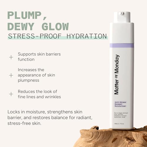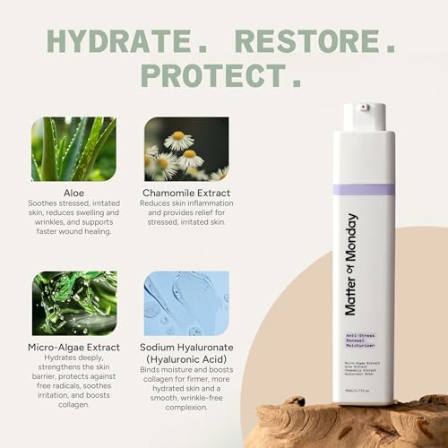 Anti-Stress Renewal Moisturizer - Hydrating Face Cream with Hyaluronic Acid, Microalgae & Aloe - Fragrance Free Moisturizer for Sensitive Skin, 1.7 oz