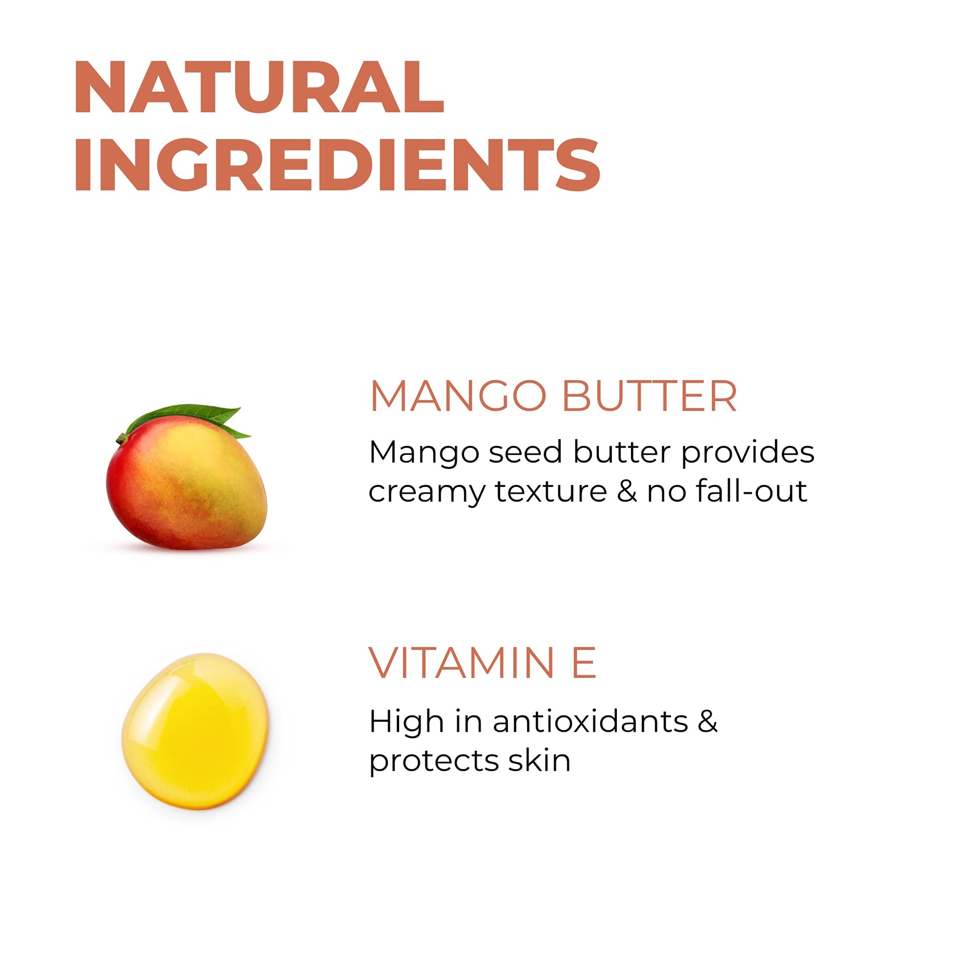 - CREAMY TEXTURE - Infused with mango butter and vitamin E, this revolutionary new formula has a creamy, buttery-soft texture with no fall-out.