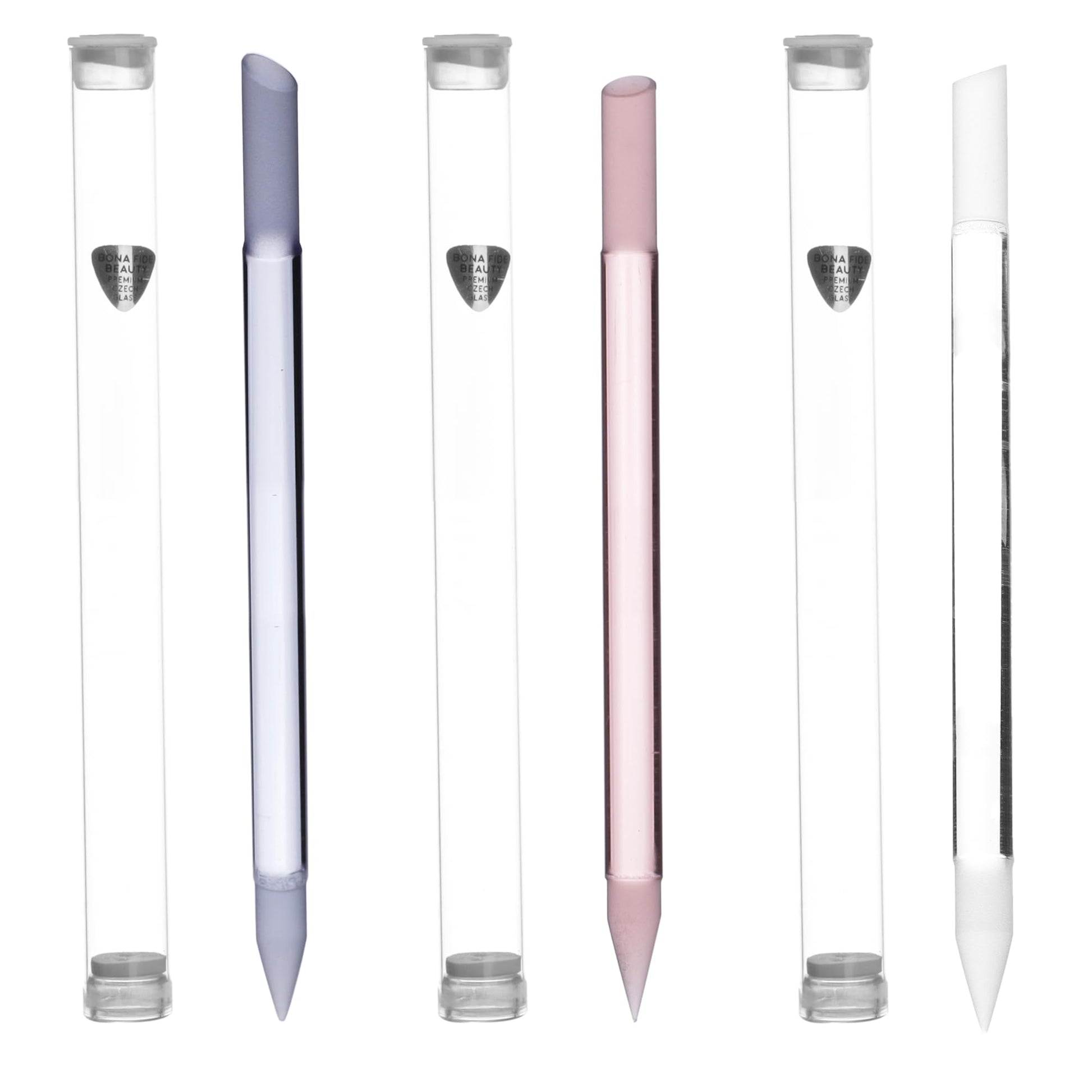 BONA FIDE BEAUTY Premium Czech Glass Cuticle Pusher Set, 3-Pieces Manicure Stick Bundle - Clear, Blue, and Pink