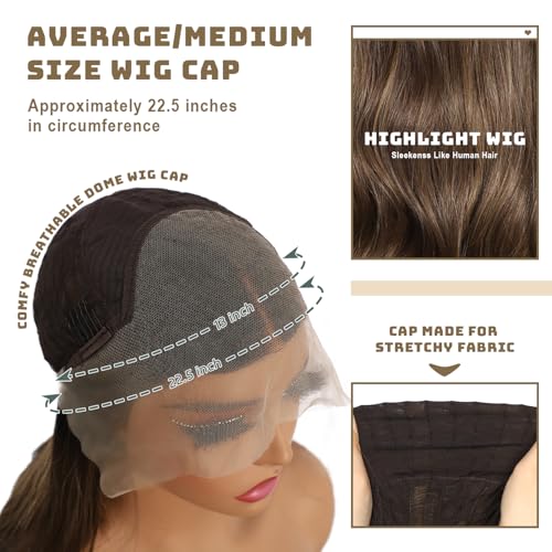 Brown Synthetic Lace Front Wig 13x4 Pre Plucked Highlight Body Wave Wigs for Women Heat Resistant Hair 22 Inch Daily Use