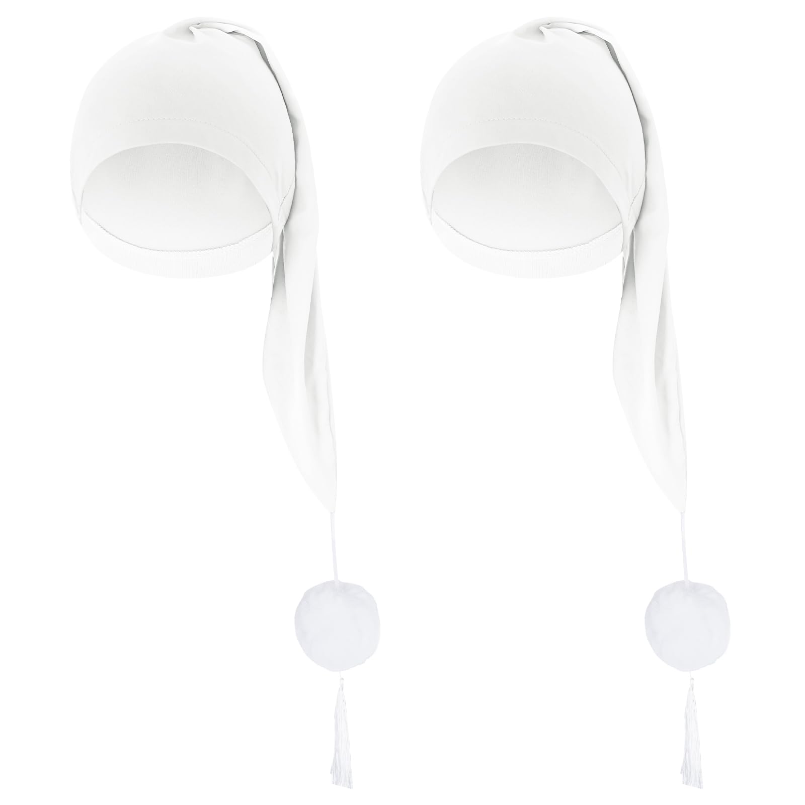 cnomg 2pcs Men's Night Sleeping Cap Adjustable Pajama Cap with Pom Ball and Tassel Women Daily Use (US, Alpha, Medium, White,white)