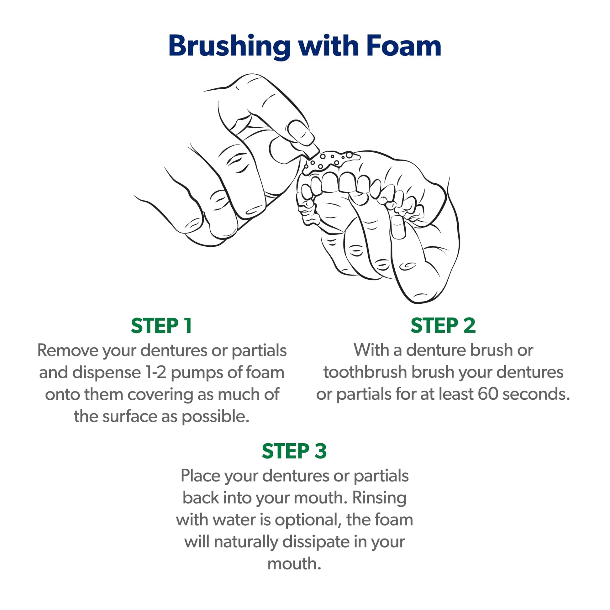 - Each FreshDent Bundle Contains a Foam and a Spray: Our FreshDent formula provides complete cleaning and oral health care in two convenient applications: foam or spray. Both applications are safe to use with all materials and are made specifically for cleaning all dentures and partials. Use the foaming formula to brush or rinse at home, and use the convenient and discreet spray bottle to freshen up on the go so your dentures are always fresh and clean.
