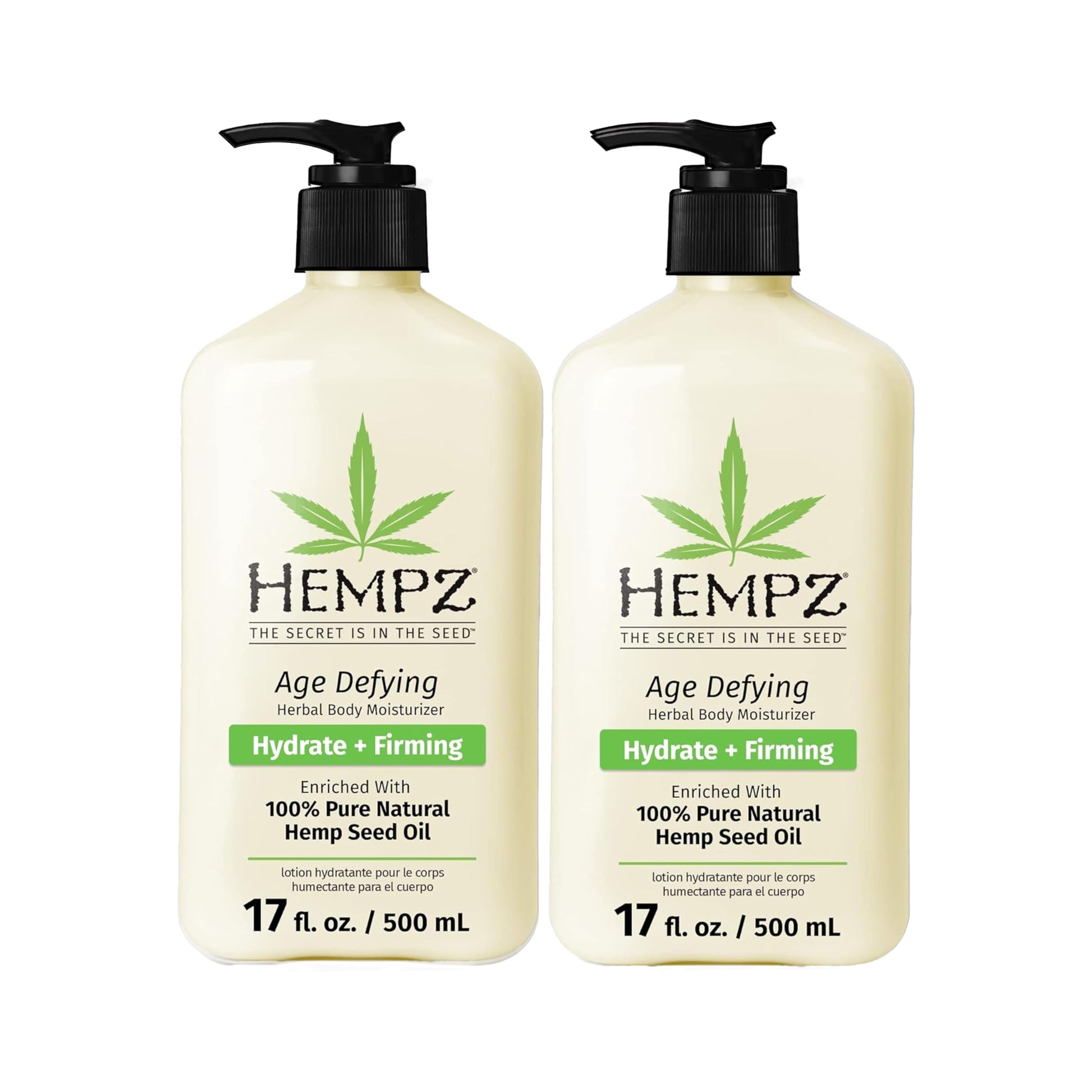 Hempz Age Defying Body Moisturizer, 17 Fl Oz, 2 Pack Bundle - Daily Herbal Moisturizer, Shea Butter Anti-Aging - Body Lotion, Hemp Extract Lotion - Skin Care Products, 100% Pure Organic Hemp Seed Oil