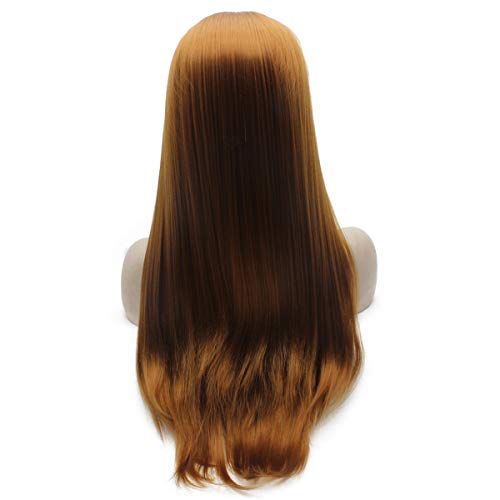 iwonawig Long Straight Auburn Synthetic Lace Front Hair Wig Heat Resistant Fiber Hair
