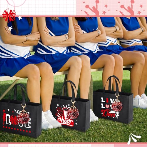 - Cheerleading Bag and Red Pom Pom Cheerleading Keychain: the cheerleading handbag is printed with interesting words and cute patterns related to the cheerleading theme [cheer], [love], [born to cheer], which will not make you feel bored; The keychain set is also an ideal gift for cheerleaders and sports fans