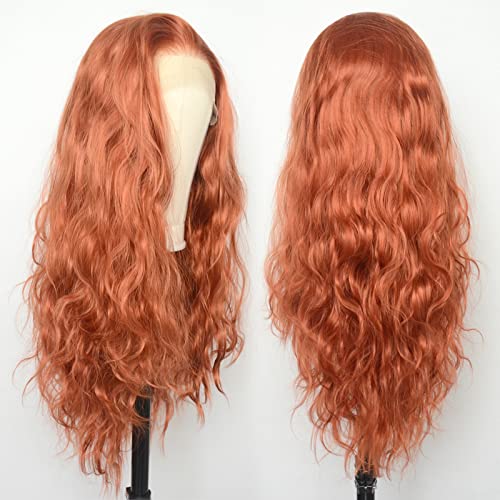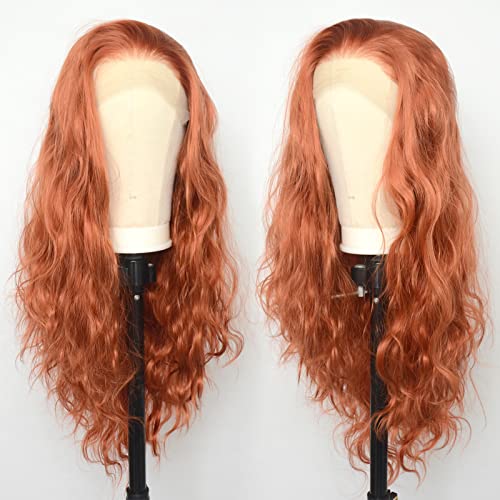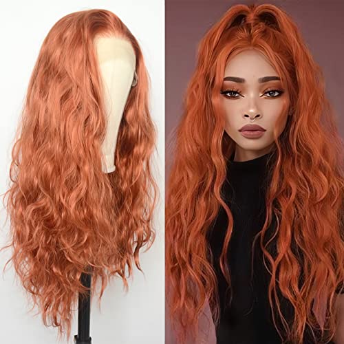 Luwigs 360 Copper Red Natural Wavy Lace Front Wigs Synthetic Loose Body Wave Ginger Heat Fiber Hair for Women Replacement Wigs Half Hand Tied Cosplay Daily Wear 22inch (22 Inch, 13x3,Coppre Red,Wavy)