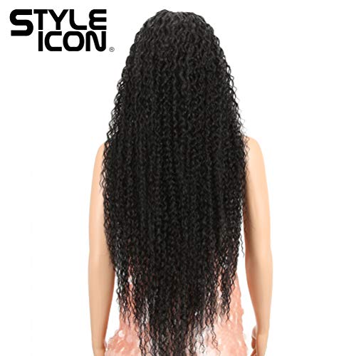 Style Icon 38¡± Long Curly Wig Lace Front Wigs Synthetic Wigs with Baby Hair Half Hand Tied 130% Density Hair Replacement Wigs (38", 1B)