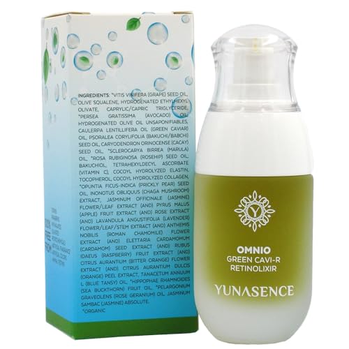 YUNASENCE OMNIO Green Cavi-R Retinolixir, w/3% Bakuchiol, Marula, Vitamin C, Chaga Mushroom. Anti Aging, Antiwrinkle.