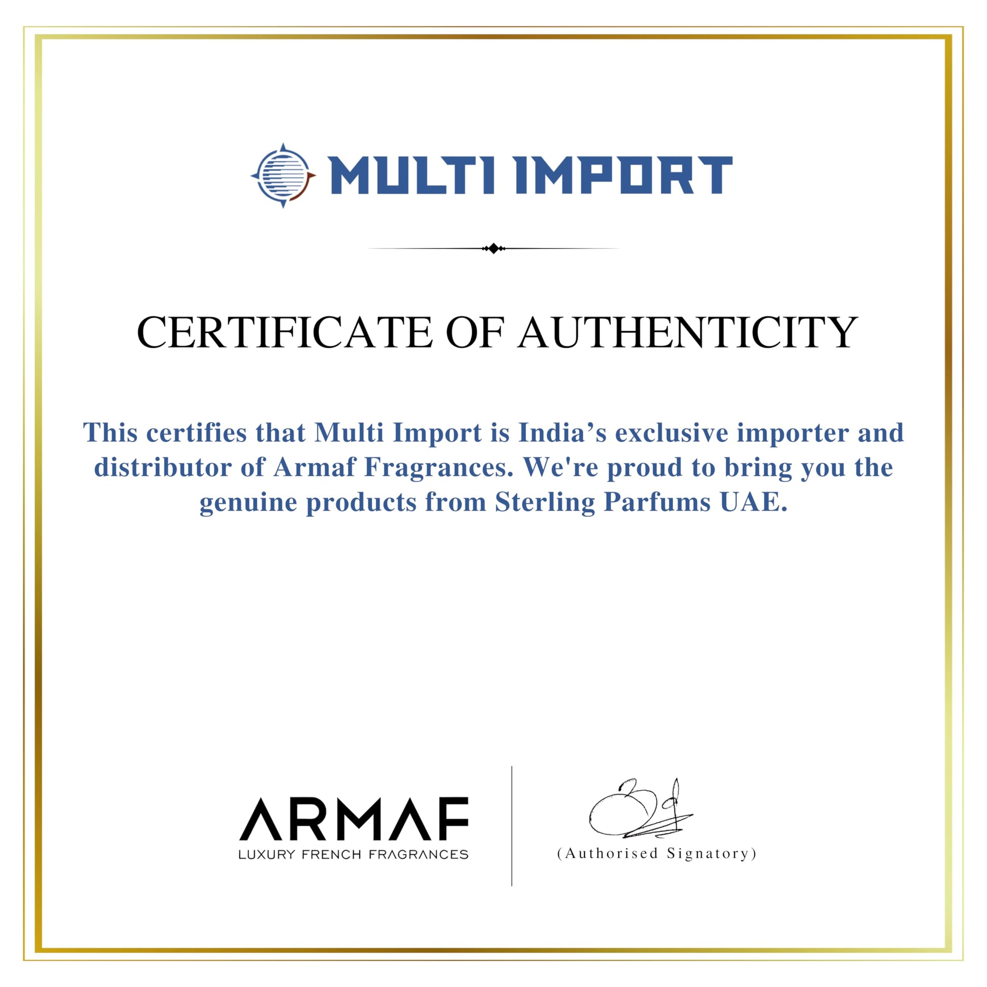 Details: Launched by the design house of Armaf. This Oriental Floral fragrance has a blend of Cardamom, Lavender and Aromatic Notes, Spicy Notes and Black Pepper, Vanilla, Tonka, Incense and Patchouli. Fragrance should be applied to the bodys pulse points.