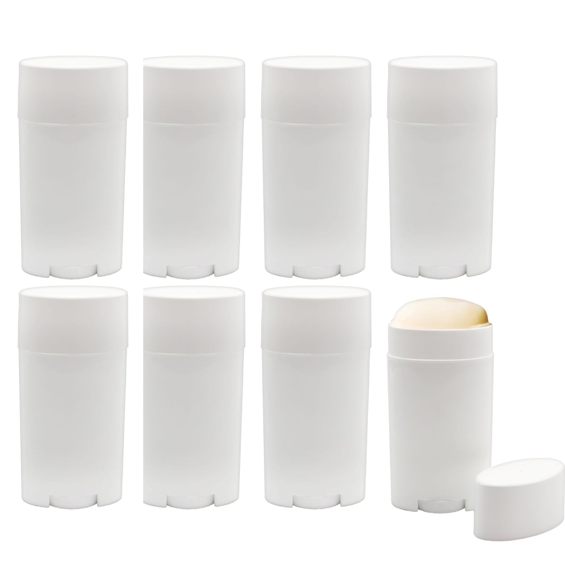 Cornucopia Brands 2.5oz Empty Deodorant Containers (8-Pack, 75ml); BPA-Free Plastic White Twist-Up Refillable Tubes for DIY Deodorant, Aromatherapy, Balm, Etc.