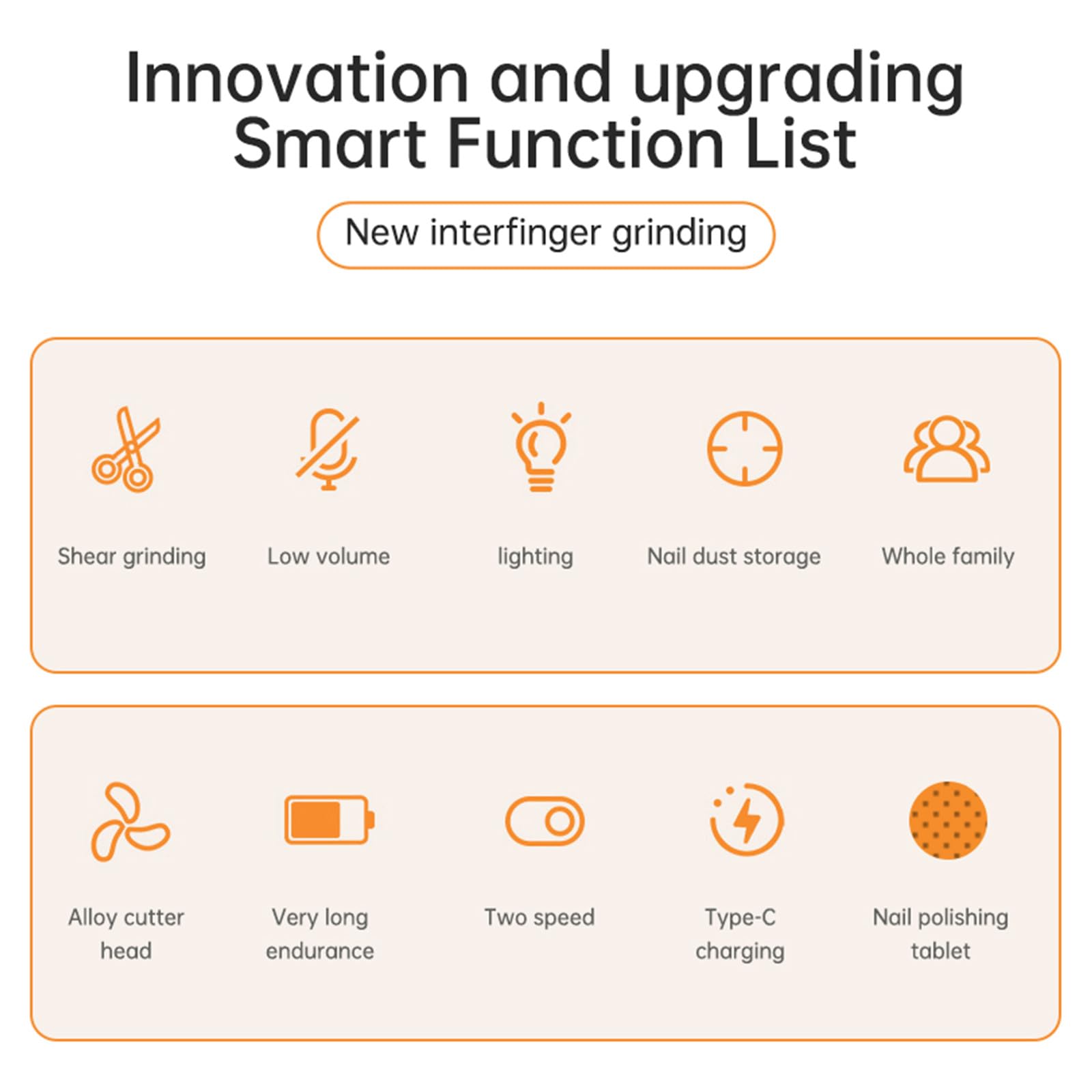 - Dual-speed Adjustment Mode: It offers two speed Settings to choose from. The low-speed mode is suitable for children and people with thin and sensitive nails. The high-speed mode can handle the harder nails of adults, and the arc-shaped blade design can quickly complete the trimming. Both modes adopt a smooth power output to avoid any lag during the pruning process