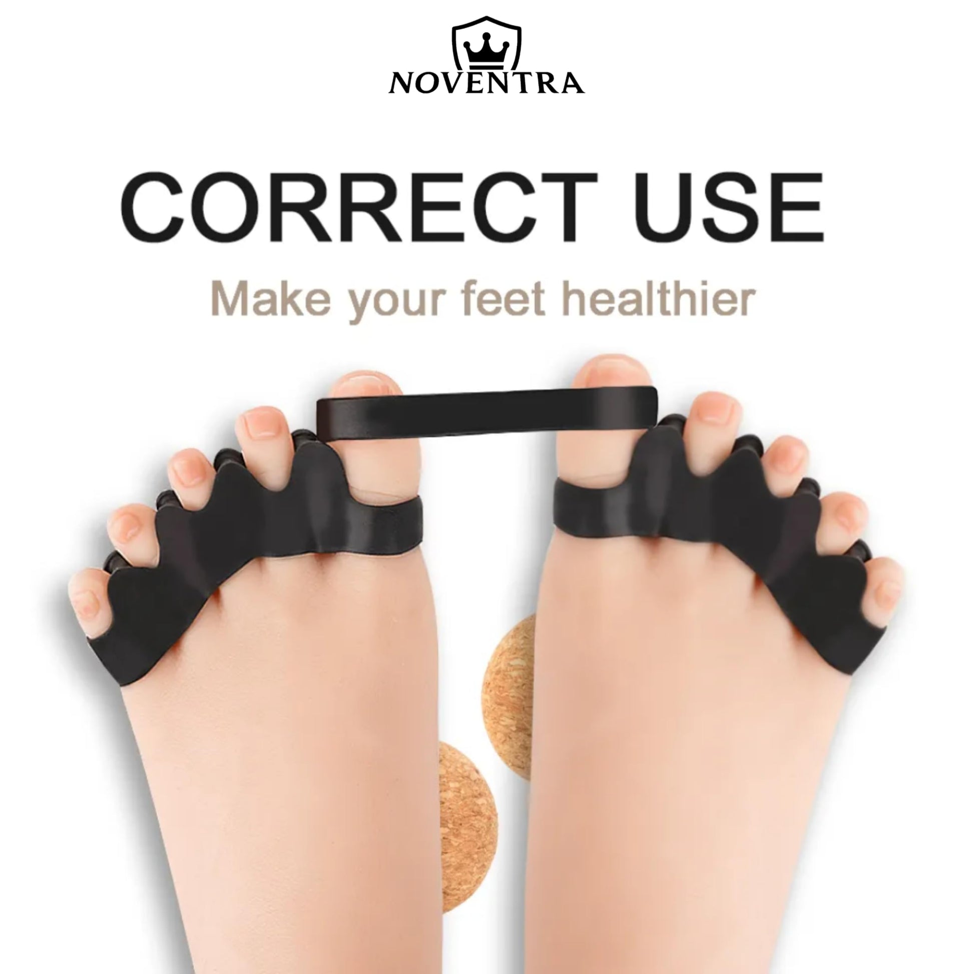 Details: Transform your foot care routine with this comprehensive kit from Noventra. The set includes specialized toe separators designed to help address common foot issues like bunions, hallux valgus, hammer toes, and overlapping toes. The resistance bands work to gently maintain and restore your foot's natural alignment through regular use. Additionally, the cork massage ball targets plantar fascia discomfort while helping to loosen tight muscles and tendons in your feet. This versatile combination provides a holistic approach to foot care, potentially helping with various types of foot discomfort. The toe separators are crafted to be comfortable for extended wear, while the resistance bands offer controlled tension for therapeutic benefit. The cork ball can be used to target specific pressure points, making it an excellent tool for foot massage and muscle relief. Whether you're dealing with foot discomfort or seeking preventive care, this kit offers multiple solutions in one comprehensive package.