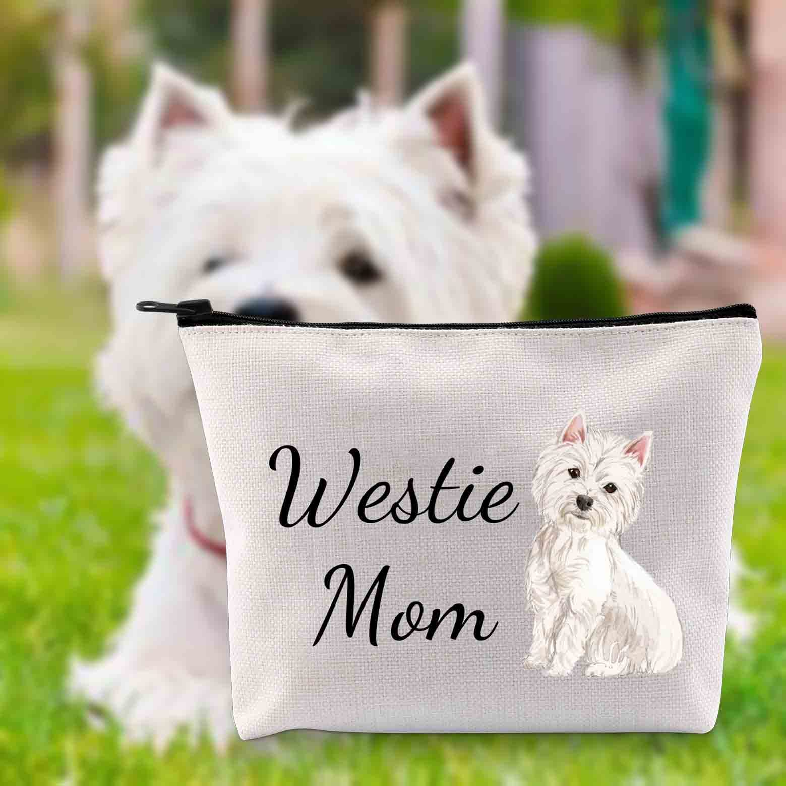 G2TUP Westie Lover Gift Westie Mom Makeup Bag West Highland Terrier Dog Owner Cosmetic Bag Dog Mom Pet Lover Gift Zipper Travel Bag (Westie Mom White Bag)