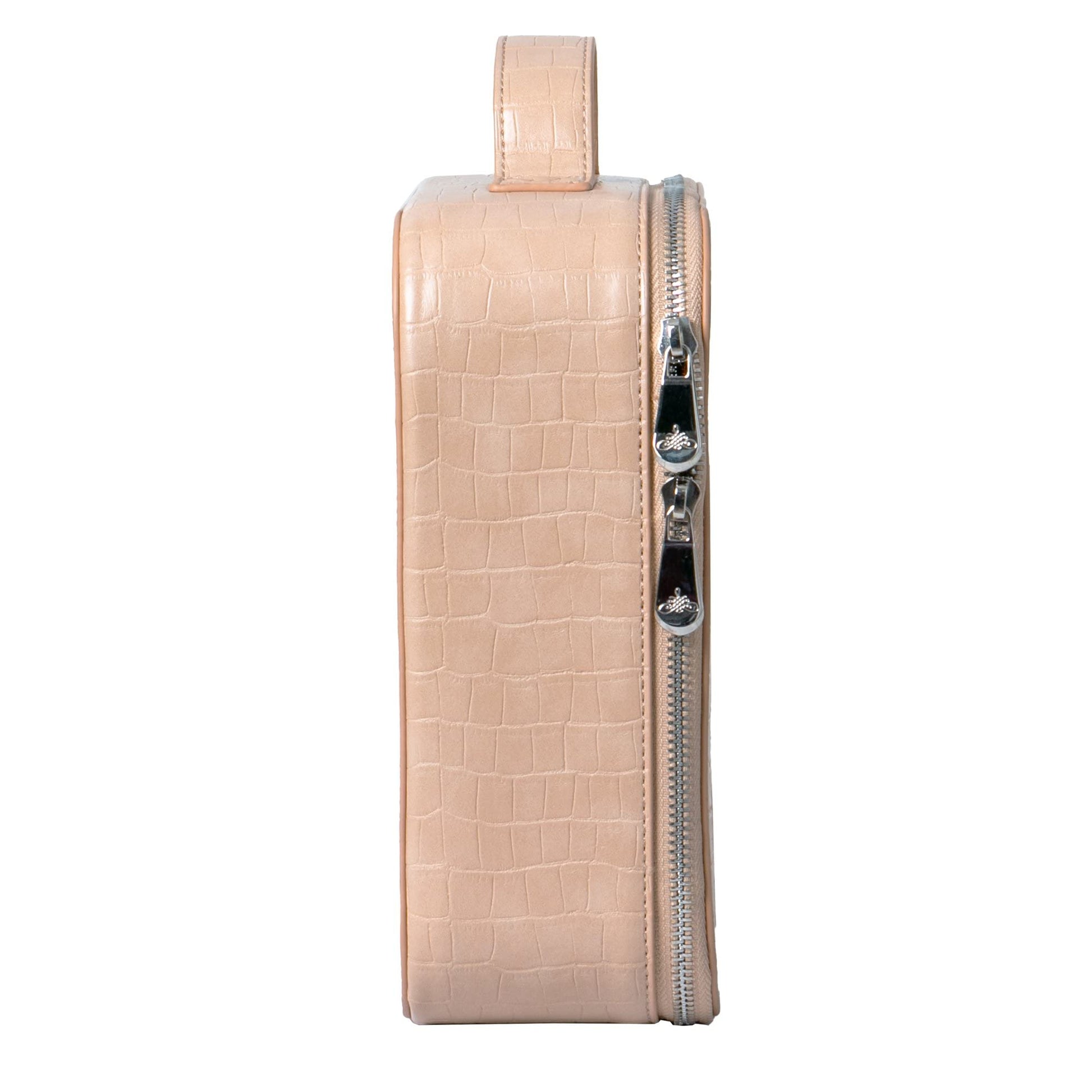 Impressions Vanity Liane V. Travel Makeup Bag, Cosmetic Case Makeup Organizer with Waterproof and Transparent Window, Makeup Vanity Bags with Adjustable Dividers and Faux Leather (Beige)
