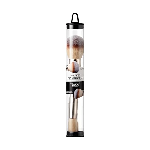 KISS NEW YORK Professional Dual Ended Powder Brush, All Over Face Application, Easy Sculped Look with Angled Powder Brush for Blush, Setting Powder, Contour