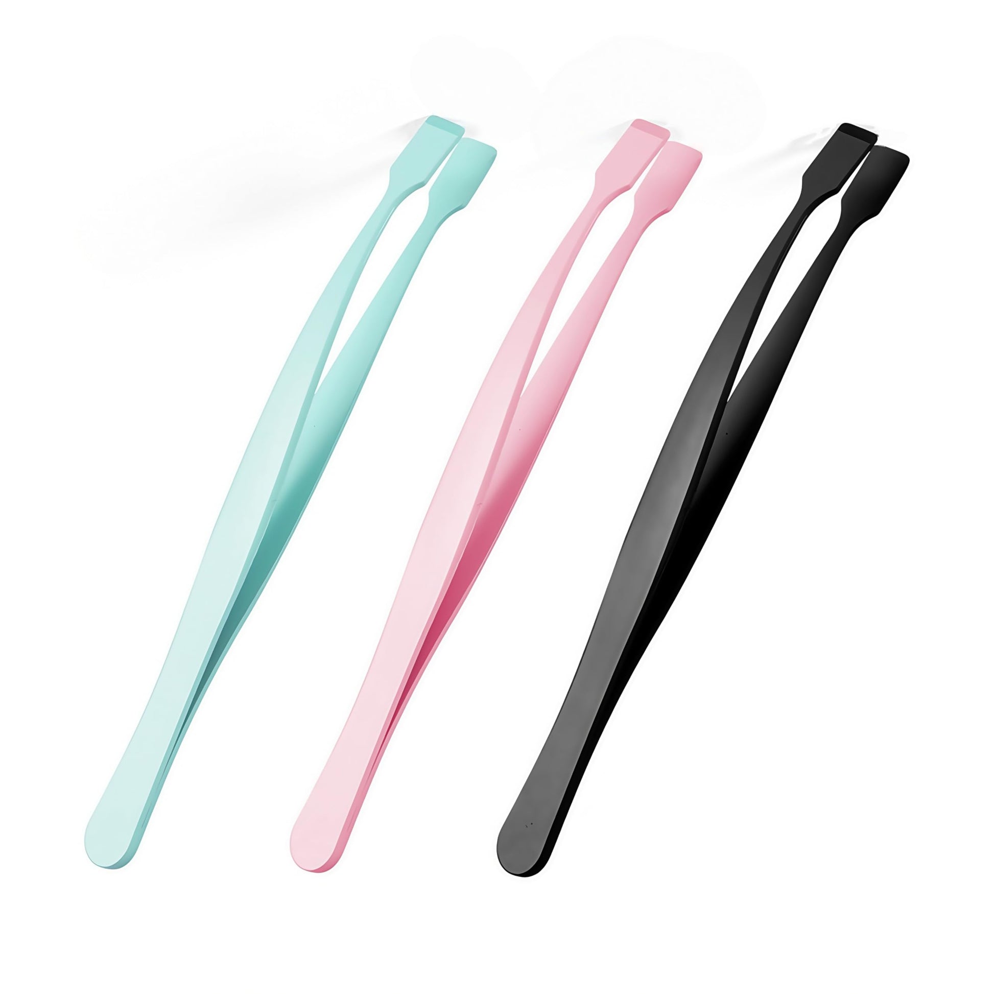 Lash Tweezers for Eyelash Extensions 3Pcs Lash Applicator Tools Stainless Steel DIY Eyelash Extensions Wisp Application Eyelash Tweezers for Lower Lashes Extensions (Black,Pink,Green)