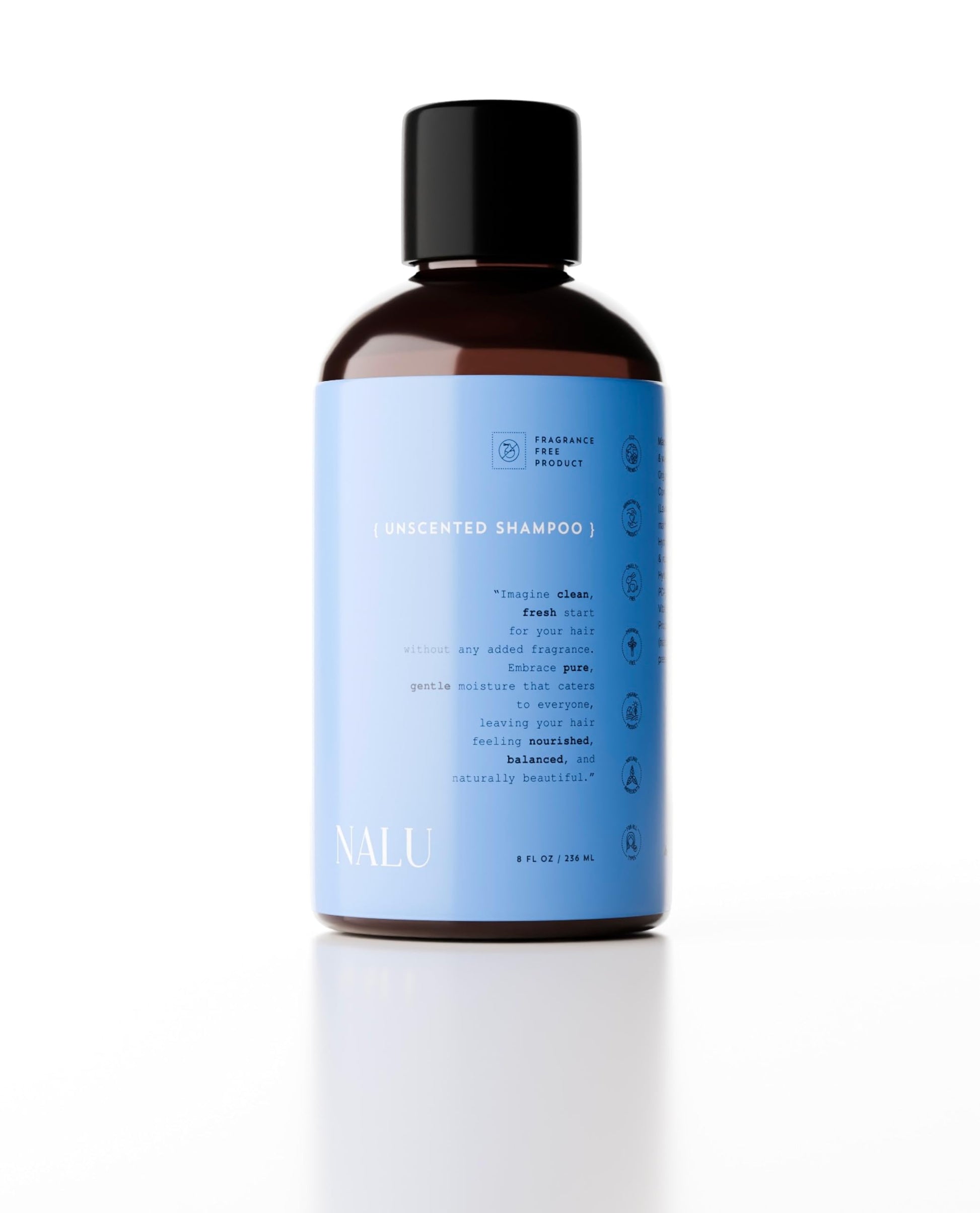NALU Unscented Shampoo Infused with Organic Rosemary & Lavender Hydrosol. For Sensitive Scalp | Rejuvenating, Nourishing, Cleansing and Calming. All Hair Types, 8 Fl Oz.
