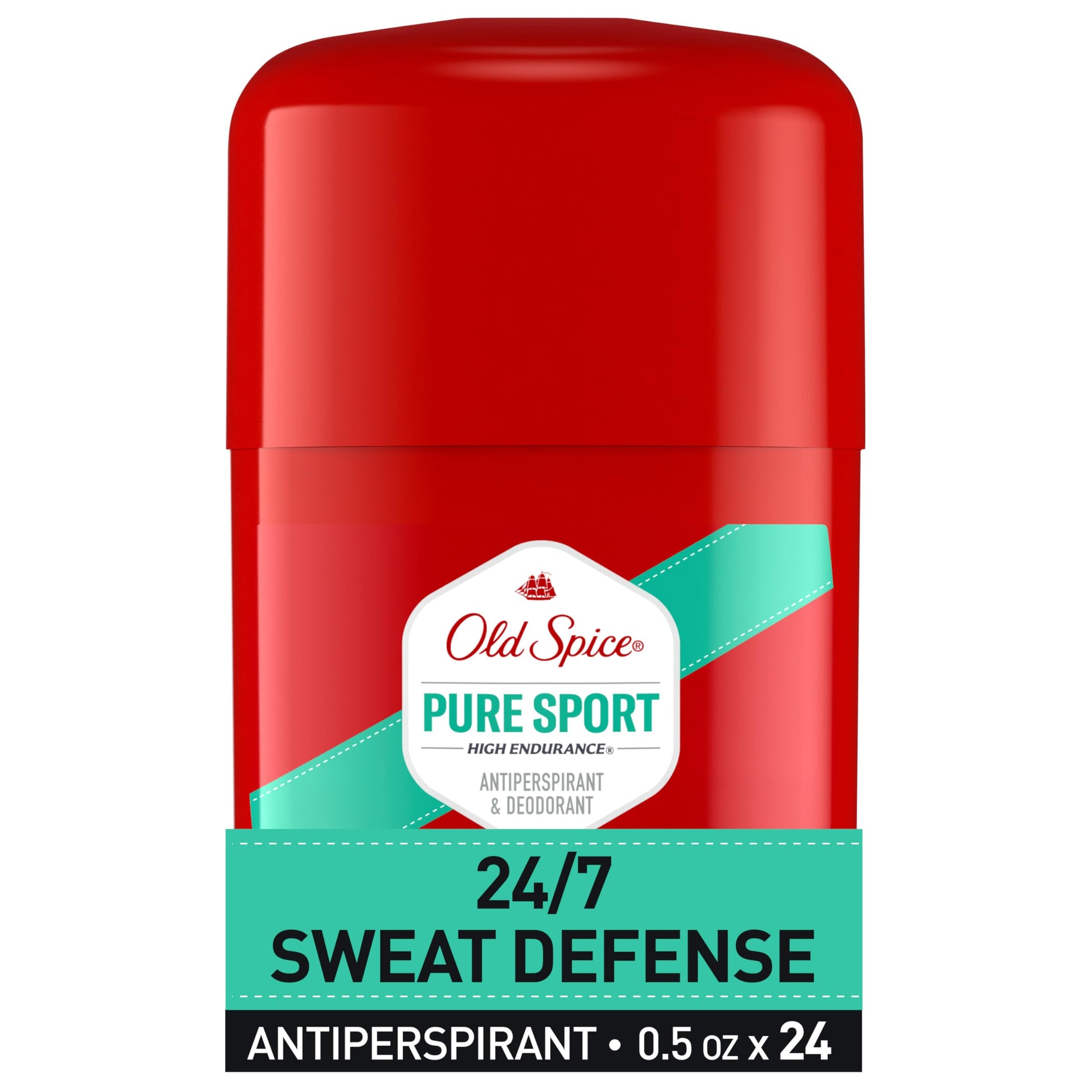 Old Spice Aluminum Free Antiperspirant Deodorant For Men, High Endurance, 24/7 Sweat Defense & Odor Protection, 24/7 Freshness & Lasting Scent, Pure Sport Scent, 0.5 oz (Pack of 24)