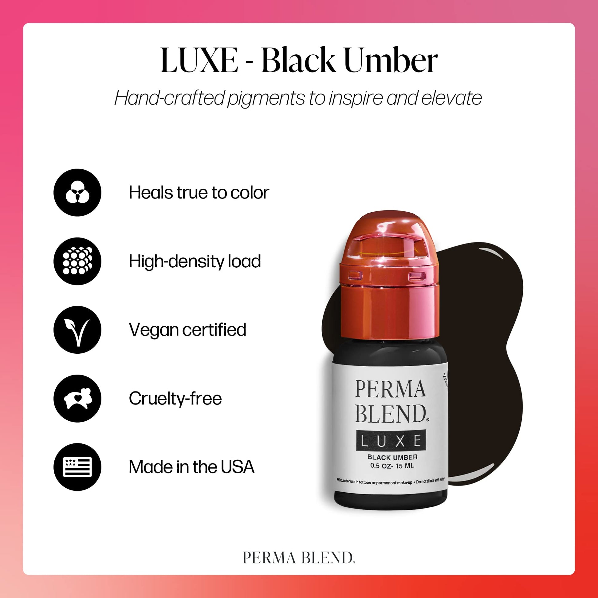 Perma Blend Luxe - Black Umber - Microblading Ink for Permanent Eyeliner - Professional Tattoo Ink - Black Tattoo Ink Makeup - Vegan (0.5 oz)
