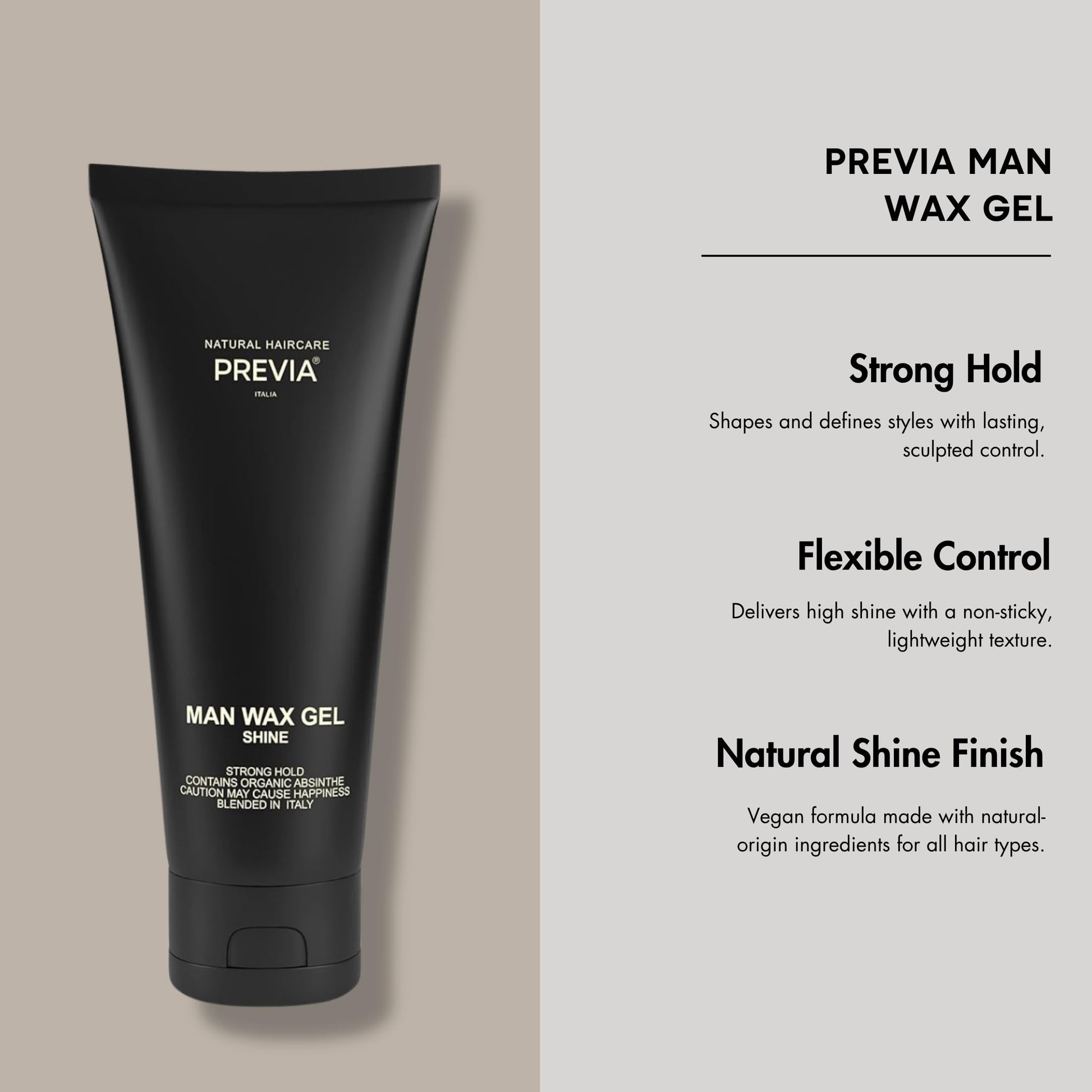 PREVIA Man Wax Gel - Shine Hair Styling Paste with Strong Hold for Men and Women, Molding Hair Paste for All Hair Types, Vegan and Natural Ingredients - 6.7 oz
