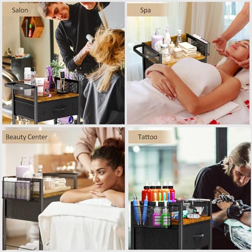 Salon Trolley Cart with Wheels, Mobile Hair Stylist Station with Metal Tool Holder & Basket, Rolling Barber Table with Fabric Drawer, Storage for Salon, Barbershop, Spa & Tattoo, Black
