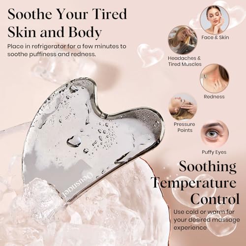 - Soothing Dual-Temperature Control: Enjoy the natural coolness of real steel gua sha for an instant soothing effect, chill in the fridge to reduce puffiness and soothe inflammation, or easily warm it up for a customized hot therapy session, to relax muscles and boost skin care product absorption. Perfect facial massager tool for reducing morning puffiness and get the skin refreshed.