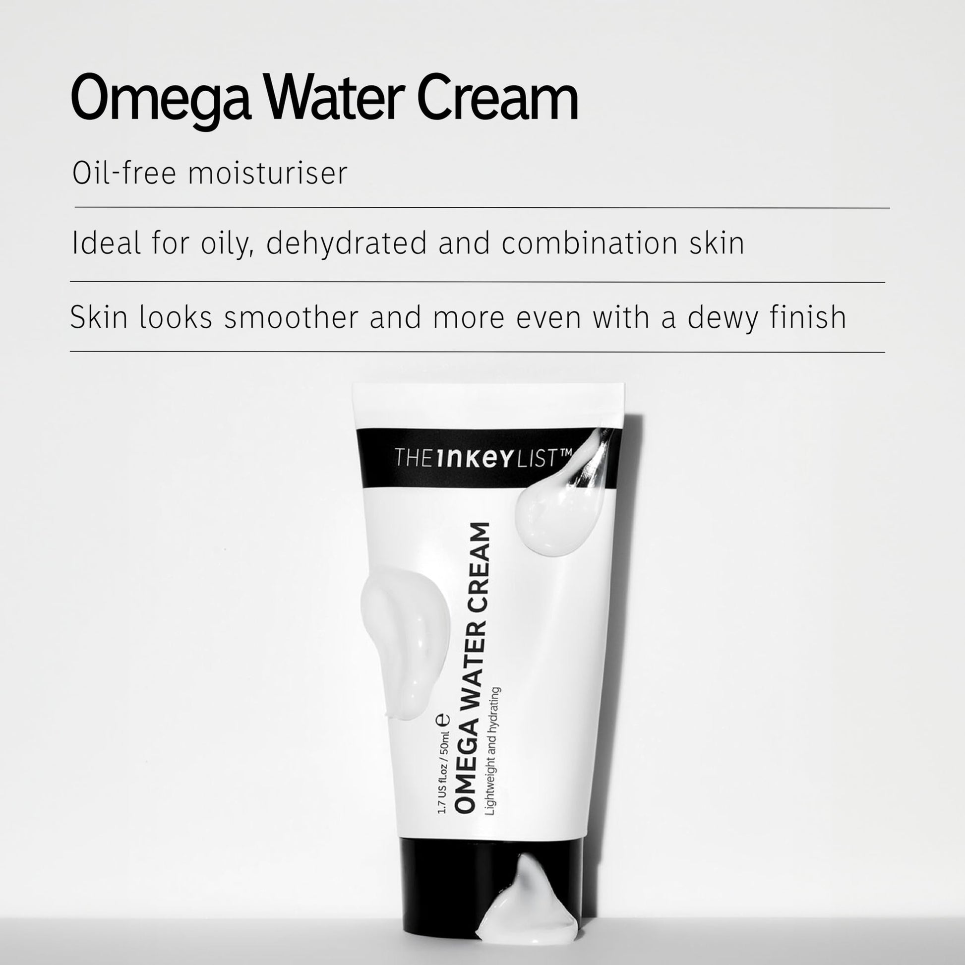 - The INKEY List Omega Water Cream Moisturizer. A lightweight, water-based gel moisturizer that immediately hydrates skin without oiliness. It supports a healthy skin barrier without oil or silicone.