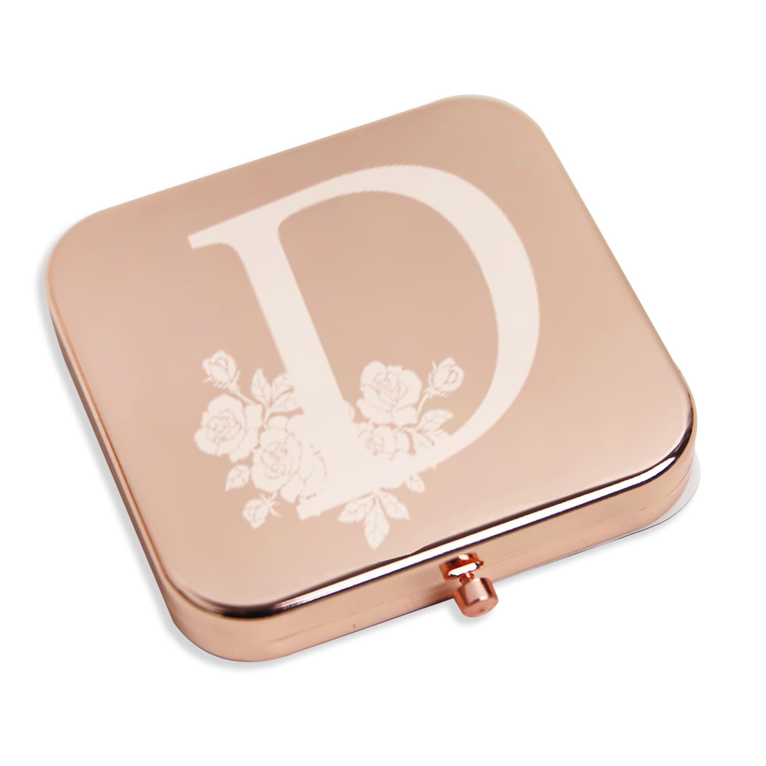 Ximruyuv Pocket Mirror for Women, Rosegold Square 2.8”×2.8” Metal Frame Double Sided Mini Magnifying 1X/2X Pocket Mirror for Men Can be Used as Gifts for Woman (D)
