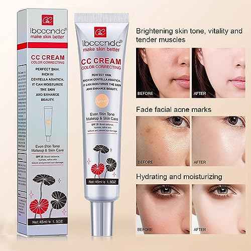 Color Correcting CC Cream With Centella Asiatica,Multi-Purpose Skin Tone Adjusting CC Cream Concealer Full Coverage,SPF 25 Sunscreen Moisturizing Pre-Makeup Primer Brightening for Mature Skin