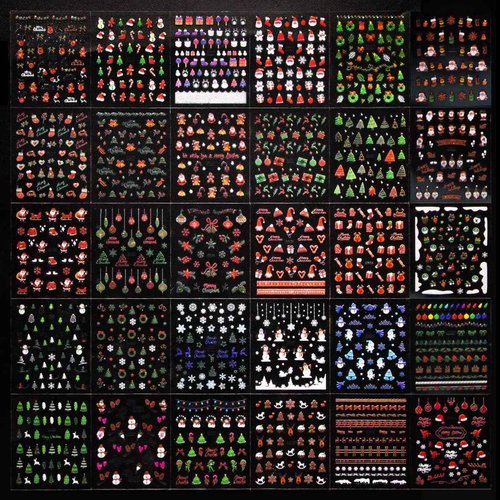 Christmas Nail Stickers 3D Embossed Santa Claus Christmas Tree Nail Art Stickers Self Adhesive Nail Decals Snowman Snowflake Nail Art for Women Manicure DIY Nails Supplies 30 Sheets