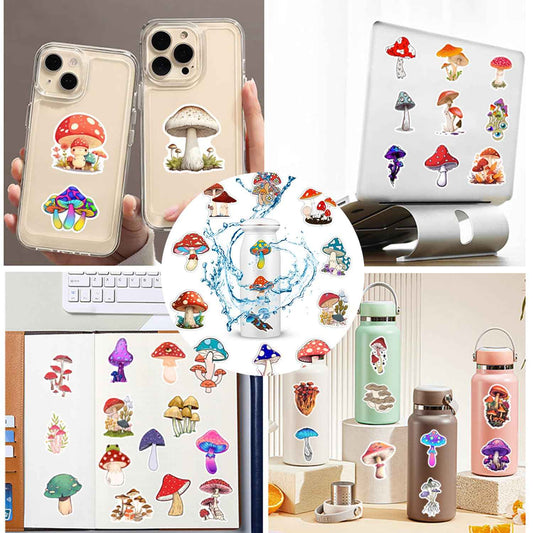 FJHAIY Mushroom Cosmetic Bag & Bracelets Gift Set - 50PCS Mushroom Stickers - Perfect for Women, Travel & Cosmetic Storage