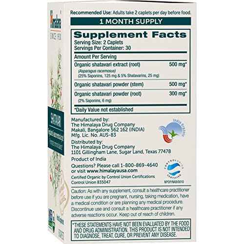 Himalaya Organic Shatavari for PMS, Menstrual Cramp Relief, Menopause Support, and Women's Health, 1,300 mg, 60 Caplets, 2 Month Supply, 2 Pack