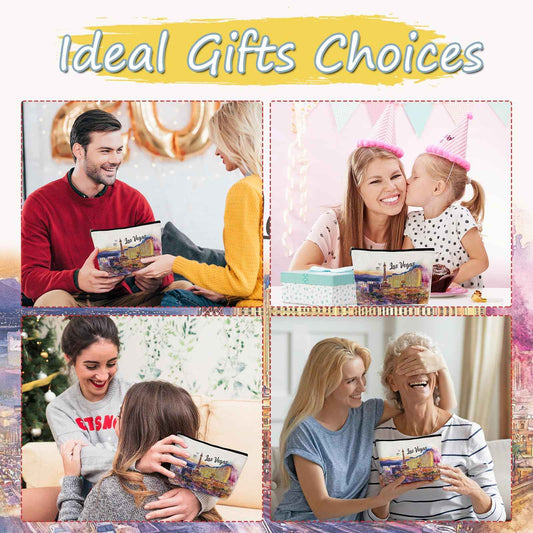 Luvsweets Las Vegas Souvenir Gift - Watercolor City Travel Makeup Bag, Las Vegas Travel Lovers Cosmetic Bags, Las Vegas Vacation Trip Gifts for Women Girls Sister Birthday Christmas Gift