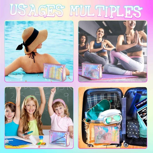 BESARME10 Pcs Holographic Makeup Bags Bulk, Party Favors Party Supplies Clear Portable Zippered Toiletry Bag for Bachelorette Party Waterproof Cosmetic Bags Wedding Gifts for Bride Bridesmaids