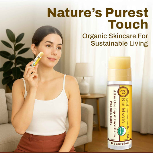 Organic Beeswax Lip Balm - Natural Chapstick for Dry Lips - Honey & Propolis Moisturizing Wand - Non Petroleum Lip Balm for Men & Women - Clean Lip Care for All Skin Types, Pack of 3