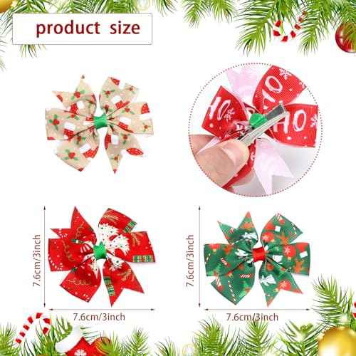 Ceenna 60 Pcs Christmas Hair Bows Clips Colorful Alligator Christmas Bow Hair Accessories Buffalo Plaid Xmas Boutique Clips Snowflake Santa Claus Bowknot Snowman Tree Hairpins Barrette for Women