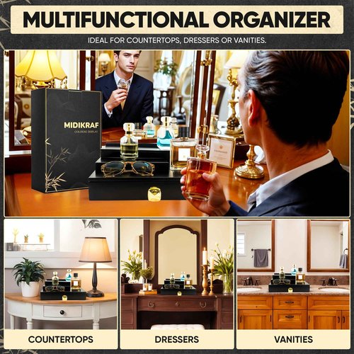 Wooden Cologne Organizer for Men – 3-Tier Cologne Shelf for Perfume Display with Hidden Compartment, Perfume Tray & Rack for Dresser, Stylish Stand for Bathroom, Great Gift for Men