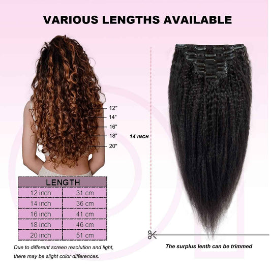 OiMiGO Real Hair Extensions, Natural Black Kinky Straight Clip in Extensions Brazilian Human Hair Clip ins Extension for Black Women 7 Pieces 14 Inch 120g