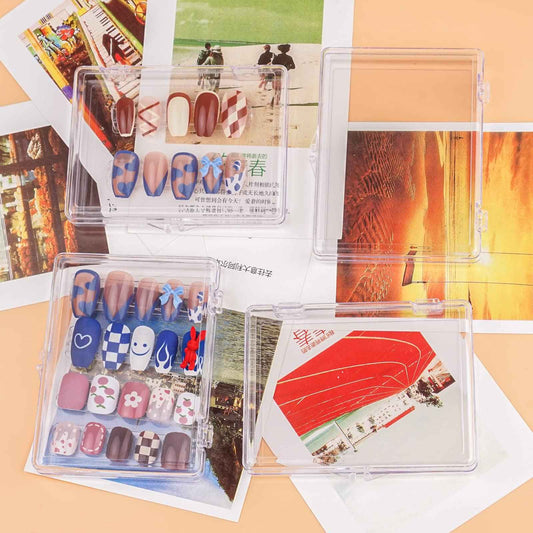 Lokyango Press On Nail Storage Box, 3.9x2.9x0.7 inch Clear Empty Press On Nail Packing Box Artificial Nail Display Organizer Case with Transparent Tape Nail Tips Display Holder (Box Only) (12PCS)