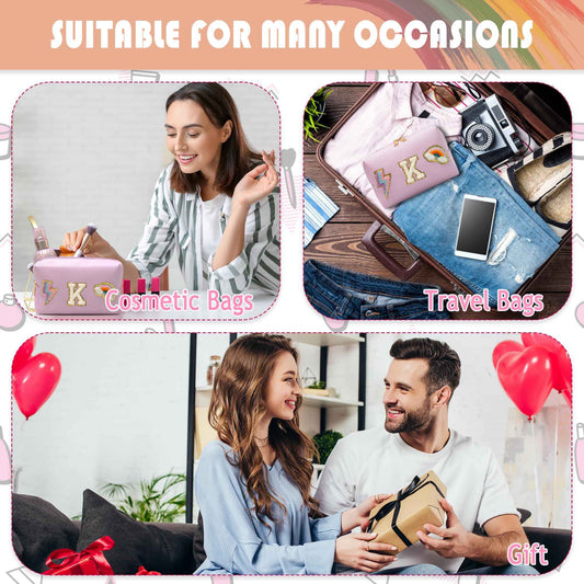 LUCKIPLUS Makeup Bag Preppy Cosmetic Pouch, Monogram Initial Pink Cute Skincare Travel Make up Organizer, Waterproof PU Preppy Case Brithday Gift for Daughter Women Mother (Letter K)