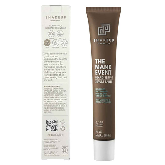 Shakeup Cosmetics Mens Beard Serum & Beard Oil, Supports Thicker & Fuller Beard, Helps Tame Dry & Unruly Hair, Nourishing with Castor Oil, Caffeine & Peptide Complex, 50ml. Aka. THE MANE EVENT