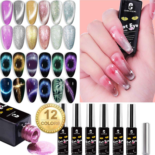Clara Colors Cat Eye Gel Nail Polish Set - 12 Holographic Glitter Colors With Magnet, Romantic Galaxy Series, Long Lasting Soak Off UV LED
