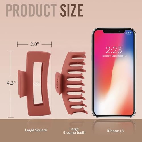 TOCESS Large Hair Claw Clips for Women Girls, 8PK Neutral Matte Jumbo Square Hair Clips for Thick, Thin, Long, Short, Curly Hair, Big Jaw Clip Set for Daily Use