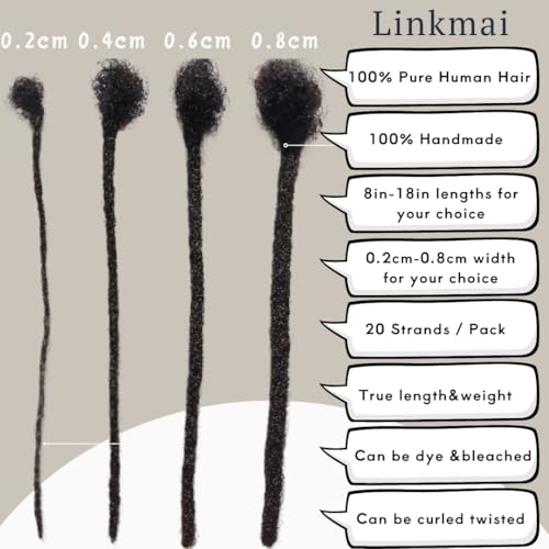 0.2-0.8cm Locs 8-18 I nch 20 Strands 100% Real Human Hair Dreadlock Extensions for Man/Women Permanent Loc Extensions Bundles Can Be Dyed Bleached Curled & Twisted (0.8CM, 1B, 16 INCH)
