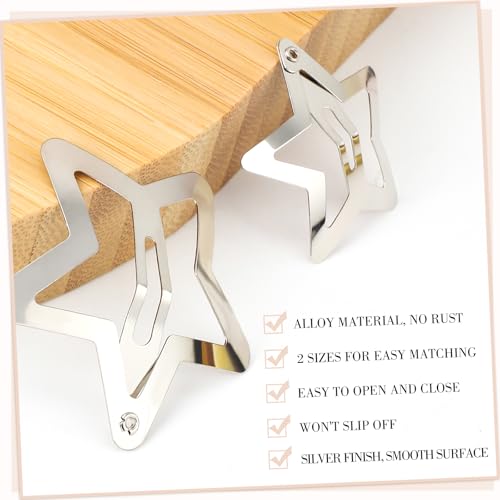 - ¡¼40Pcs Star Hair Clips¡½You will get 40 pcs star hair clips, 20pcs 1.2 inch star hair clips and 20pcs 1.6inch silver star clips. Sufficient quantity and different sizes are enough for your daily use, matching with various hairstyles and occasions, and you can also share with friends and family.