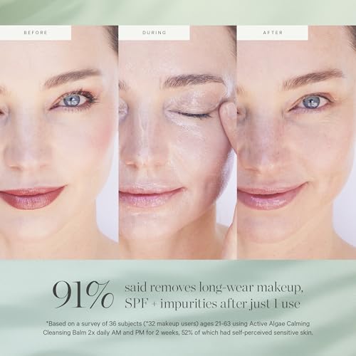KORA Organics Active Algae Calming Cleansing Balm, Balancing Facial Cleanser to Help Reduce Redness & Blemishes, Melt Away Makeup & Sunscreen, Face Wash for Men and Women, 3.38 fl oz