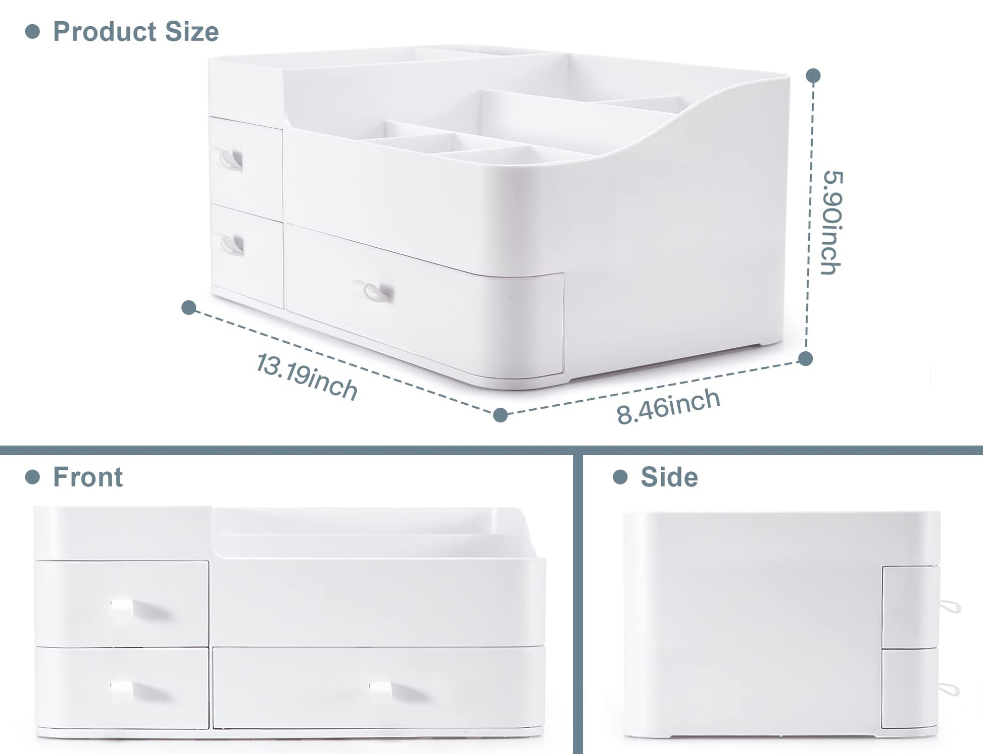 - 【Large Capacity-Clutter-free】The makeup organizer measures 13.19“×8.46”×5.9" and easily meets the daily storage needs of dressing tables and bathrooms. It can hold most of a girl's skincare products, cosmetics, and perfumes, allowing scattered items to be neatly organized and keeping the countertop tidy and orderly at all times