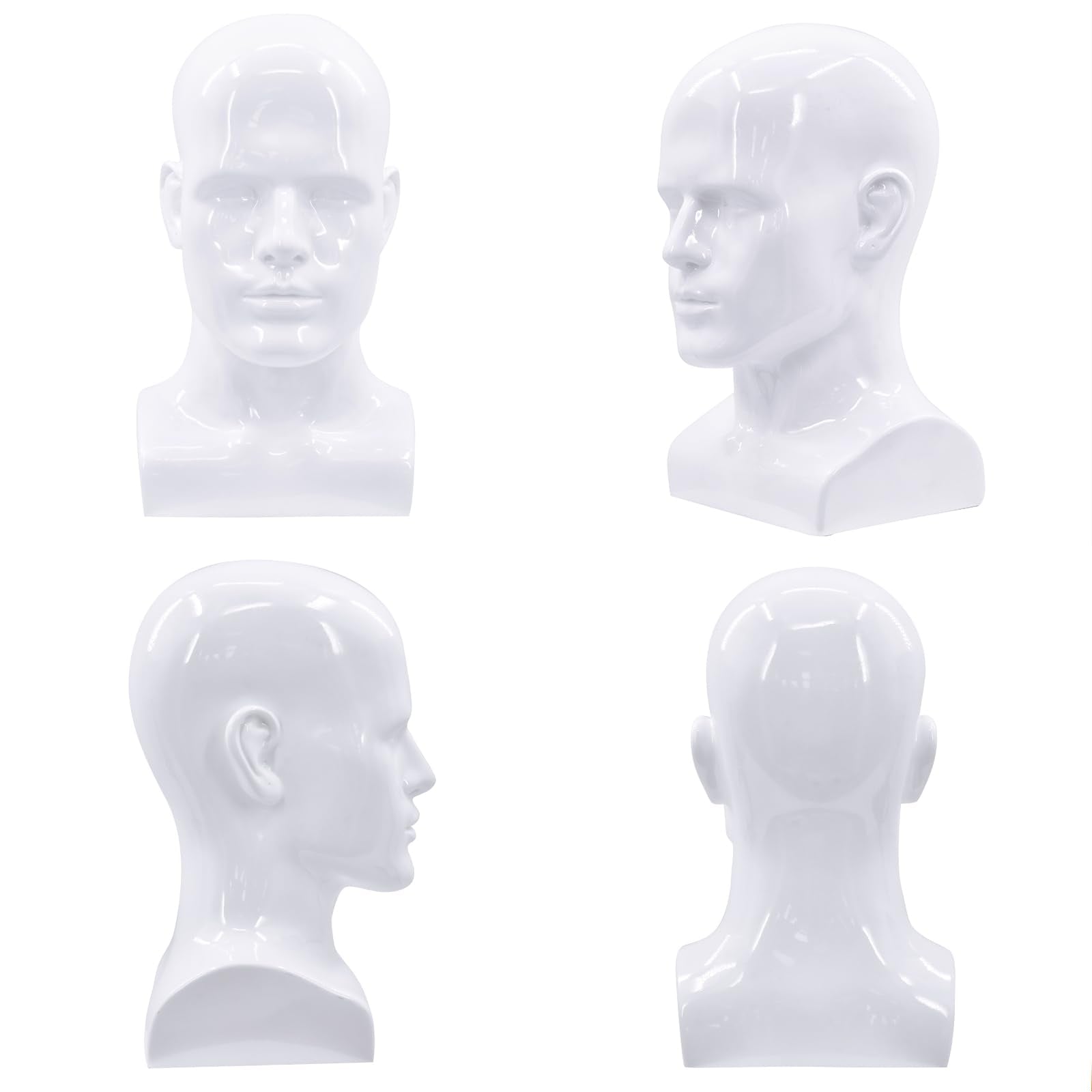 VEELTRAS Male Mannequin Head PVC Professional Head Model Male Cosmetology Manikin Head Display for Wigs Hat Mask Scarf Sunglasses with Mount Hole (Bright white)